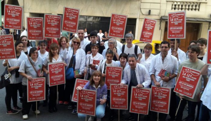 Hoy, los farmacéuticos concentraron en la Procuración General de la Nación ya que el organismo debe expedirse sobre el conflicto que abrió la multinacional contra el sector.