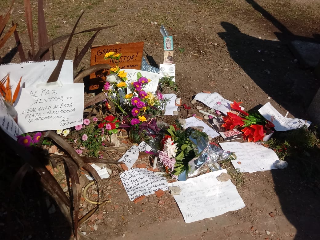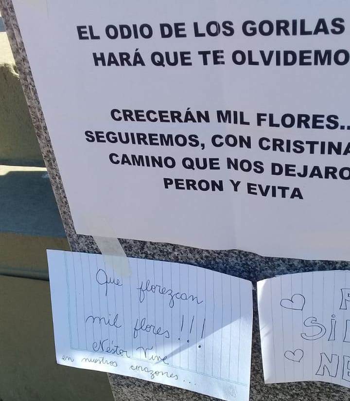 Desde que el busto fue extraído, la secuencia de pequeños reconocimientos a Néstor Kirchner crecieron en el lugar. Militantes, adherentes y simpatizantes del ex Presidente dejan flores y pegan carteles críticos hacia la gestión de Cambiemos.